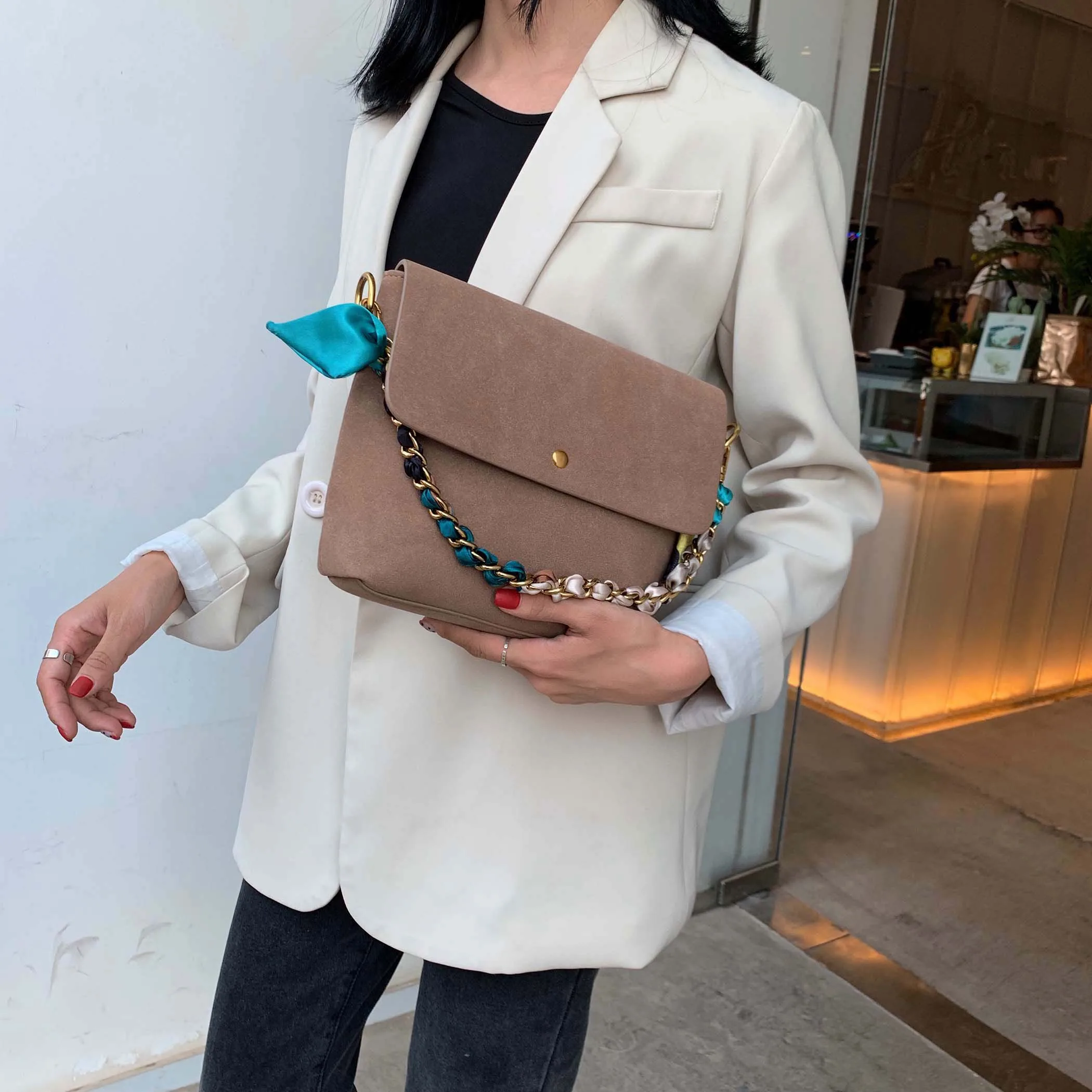 Flash Sale Solid Color Scrub Leather Crossbody Bags For Women 2019 Chain Scarf Shoulder Messenger Bag Lady Win